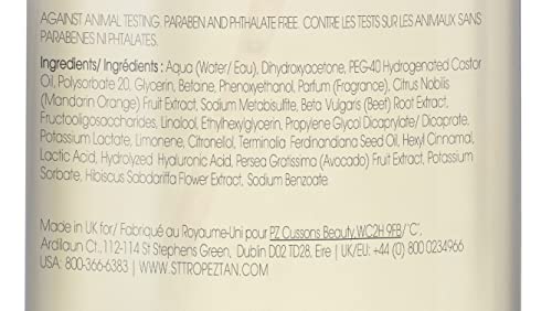 Product Description New Self Tan Purity Vitamins Bronzing Water Body Mist is a lightweight and easy-to-use clear self tanner that simply spritzes onto skin for a supercharged, sunkissed glow and instant feel good factor – without the harmful effects of UV rays. Our new tanning water mist is infused with 95% natural skincare ingredients, hydrating hyaluronic acid, refreshing green mandarin water and Vitamin C and D boosters to mimic the effects of the sun, without the damage. Best for an instant radiance boost and an easy-to-apply week-long golden glow for pale to medium skin tones. - Medium golden tan - 100% clear, clean, cruelty free and vegan-friendly formulas in a recyclable bottle, made from recycled plastic - With 95% natural skincare ingredients and 100% natural tanning active - Apply day or night with no need to rinse and no transfer onto clothing or bed sheets - Simply spritz and blend with our Luxe self tanning mitt - Your sunkissed glow will develop over 4-8 hours and fade evenly over time - Suitable for sensitive skin. Step 1. PREP Exfoliate and moisturize dry areas, hands, feet, ankles and wrists Step 2. APPLY Spritz all over body, using a Mitt to blend and ensure no missed patches Step 3. GLOW Your tan will develop over 4-8 hours into a medium golden tan. Top up as desired to maintain tan. Layer for a deeper shade Brand Story There's nothing better than having the perfect tan—especially if you get it the safe way. Whether you prefer an all-over bronze glow or a lighter, natural tone, St. Tropez provides a self-tanner for all types of sunkissed needs.
