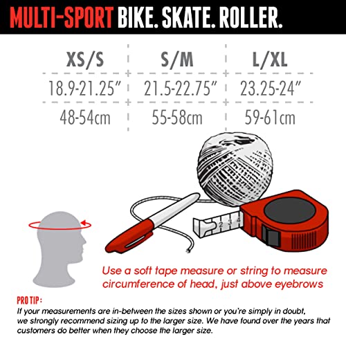 The Triple 8 Gotham Dual Certified Skateboard and Bike Helmet is the perfect blend of comfort, safety, and good looks. Dual-certified for both bike and skate, and its innovative Conehead EPS liner offers additional protection with collapsing cones that act like a crumple zone to absorb the energy from a crash and spread the force sideways within the helmet liner. An ABS shell, with an urban profile and subtle brim, features Triple Eight logo vents for maximum airflow. Ideal for biking, skateboarding, rollerblading, roller derby, and commuting, the helmet complies with U.S. CPSC Safety Standard for Bicycle Helmets for Persons Age 5 and Older and ASTM F-1492 Skate safety standards. Includes two sets of removable, washable terrycloth Sweatsaver Fit Pads, an adjustable dial system, and chin strap with side release buckle for customizing the fit. Available in three sizes: Size XS/S fits 18.9 – 21.3 in (48– 54 cm), S/M fits 21.7 – 22.8 in (55 – 58 cm), L/XL 23.2 – 24 in (59 – 61 cm). To determine proper size, measure using a soft measuring tape or string.
