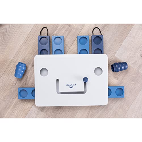 Dogs are very playful and intelligent animals. Channel their energy and curiosity into something positive with TRIXIE's Move-2-Win. With four levels of play that require practice and concentration, this game is designed for the advanced canine game player. Level 1: Lift up cones. Design prevents cones from being knocked over. They must be lifted straight up. Level 2: Tug open red drawers using loops Level 3: Push slider knob along the path to open two yellow drawers Level 4: Place cones in top holes and use as stoppers Keep your dog challenged and curious by varying the number and placement of treats. The non-slip rubber feet keep the box in place as your dog pulls, lifts and explores. We've also included an instructional booklet with tips and tricks for challenging and training dogs of all ages through play. Dishwasher safe. Measures 13 x 5 x 2 inches. Weight 3 lbs.