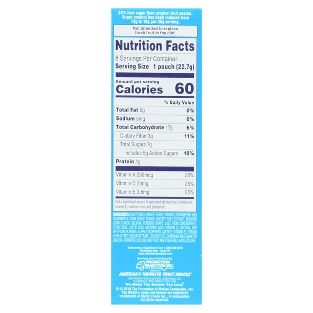 Welch's Reduced Sugar Mixed Fruit Fruit Snacks 0.8oz Pouches - 8Ct Box