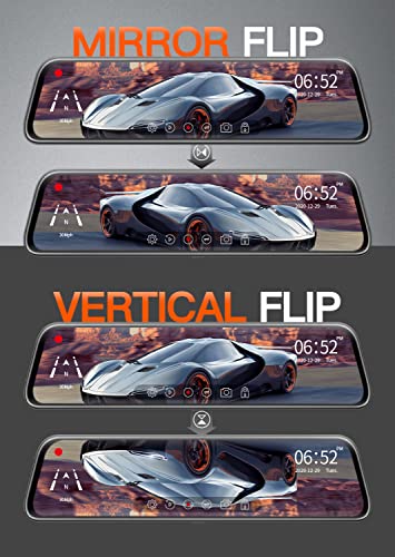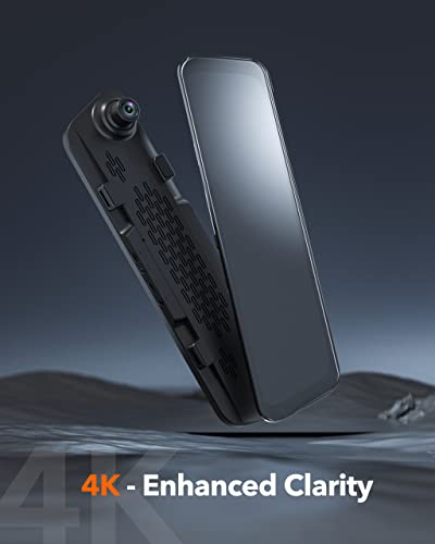 WOLFBOX G840S 12' 4K Mirror Dash Cam Backup Camera, 2160P Full HD Smart Rearview Mirror for Cars and Trucks, Front and Rear View Dual Cameras, Night Vision, Parking Assistance, Free 32GB Card and GPS